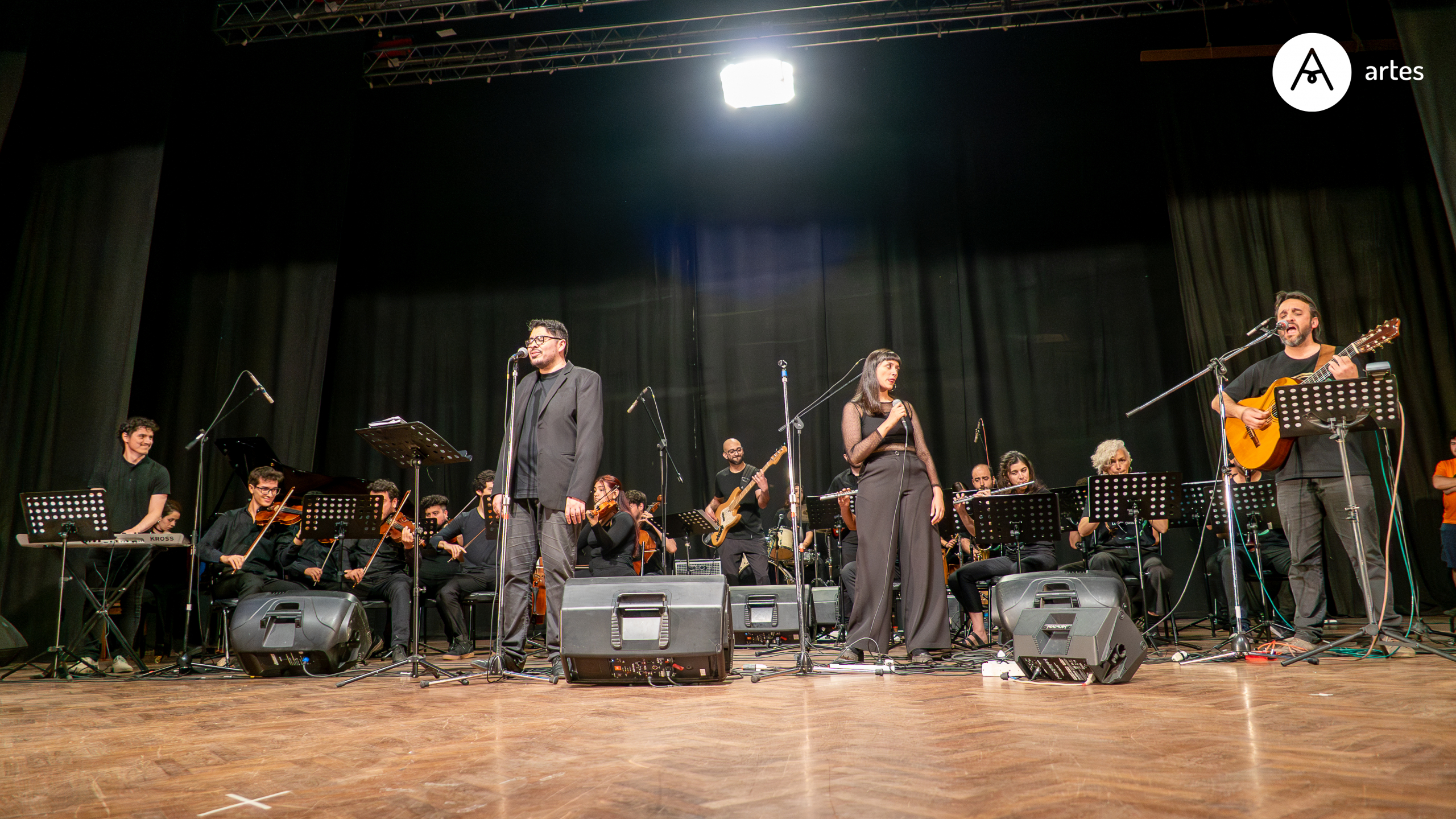 La jornada incluyó un homenaje musical a cargo de la Orquesta Juvenil Eva Perón del Ipem Nº5 y La Otra Orquesta, dirigida por el docente de nuestra facultad José López, que interpretaron parte del repertorio del cantautor.