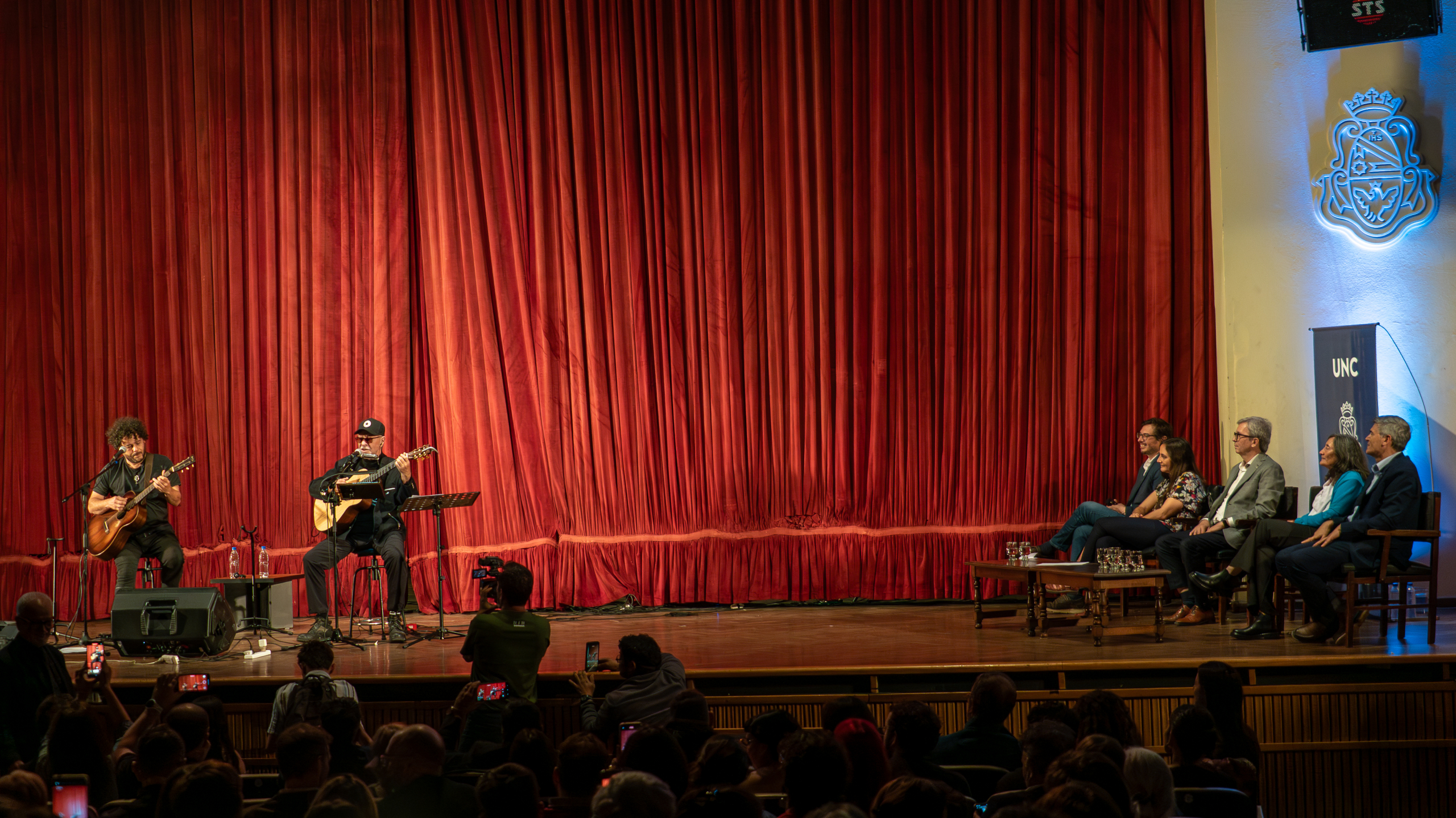 El cierre de la ceremonia fue profundamente emotivo: entre aplausos prolongados, Gieco compartió algunos de sus clásicos acompañado por Raly Barrionuevo y por el público presente, en un encuentro que se vivió como una verdadera celebración de la música, la memoria y la universidad pública.