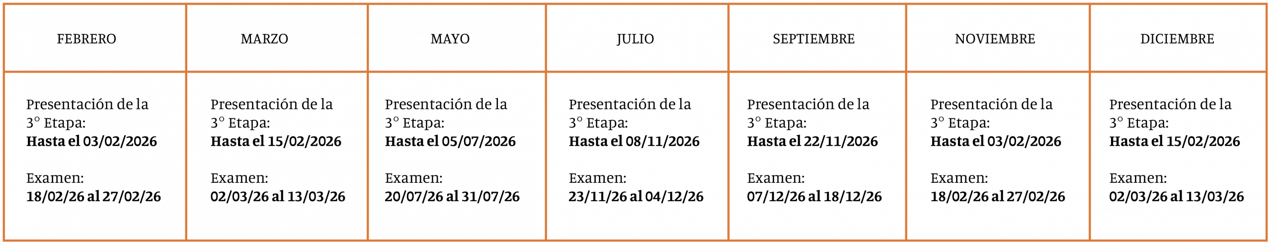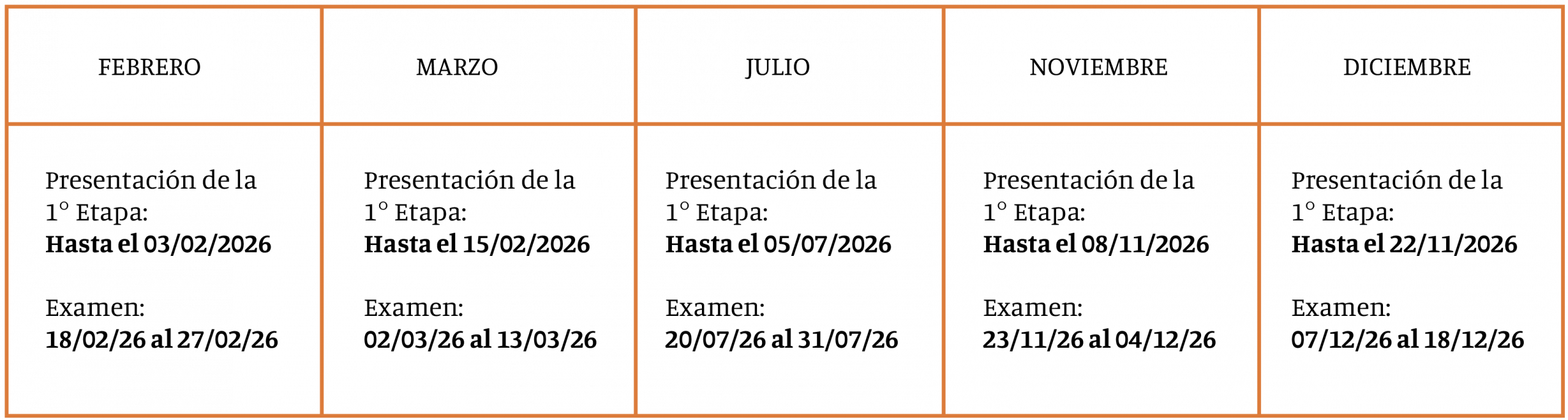 Podrá entregarse únicamente en todos los turnos de exámenes: febrero/marzo, mayo, julio, septiembre y noviembre/diciembre, 15 días antes del comienzo de los mismos.
